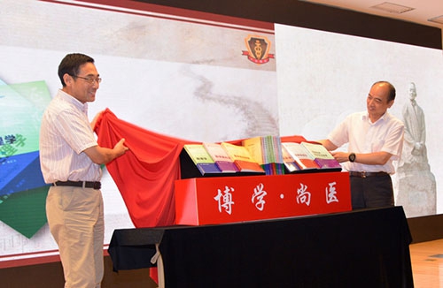大会还举行了“博学尚医”十五本基础医学核心课程系列教材的揭幕式。这是一套由基础医学院教师自行编撰的以“简洁、创新、结合临床”为原则,体现上医特色的基础医学系列教材。新教材的问世,标志着基础医学院本科生教育教学改革迈出重要一步。
