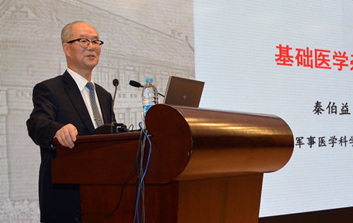 闻玉梅院士、秦伯益院士分别作了《严谨求实一甲子》和《基础科学杂谈》主旨报告,两位院士的精彩报告赢得观众的阵阵掌声,让师生们受益匪浅。学生代表金恺迪在发言时表示,前辈的言传身教将永远激励着医学“后生们”在医学探究的道路上努力前行。
