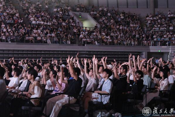 新生辅导员代表分享从舞台到讲台的转变,“以后的路不再有痛苦,我们的生活会有多酷。”她用歌词寄语愿每位新生在复旦书写独家记忆。
