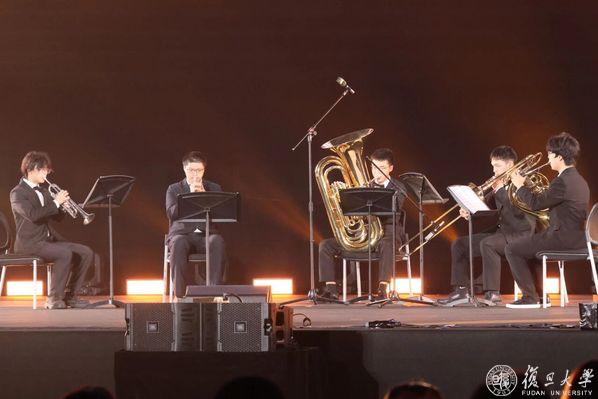 复旦大学学生交响管乐团铜管声部倾情演奏扬·叶瓦尔《降A大调第三铜管五重奏》,长号、大号、小号与圆号和谐共鸣,乐声抚平深夜的彷徨,吹奏出内心的安宁。