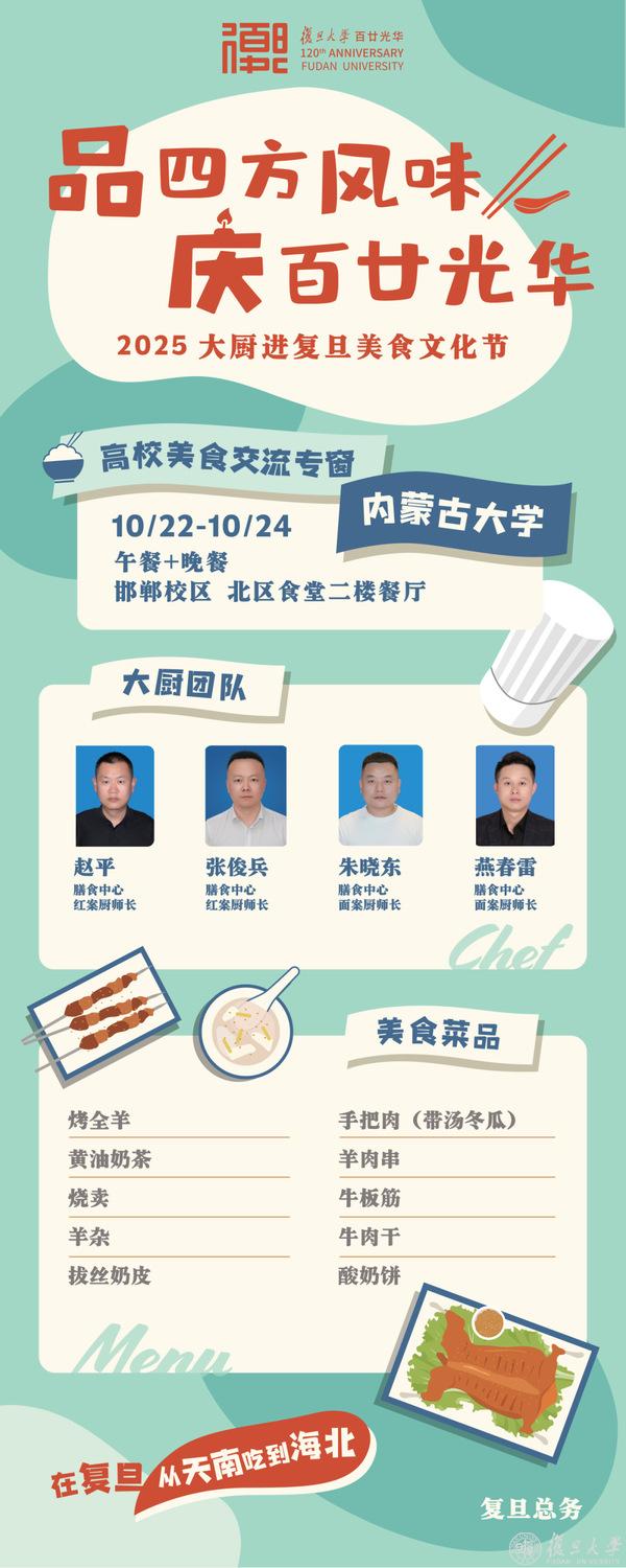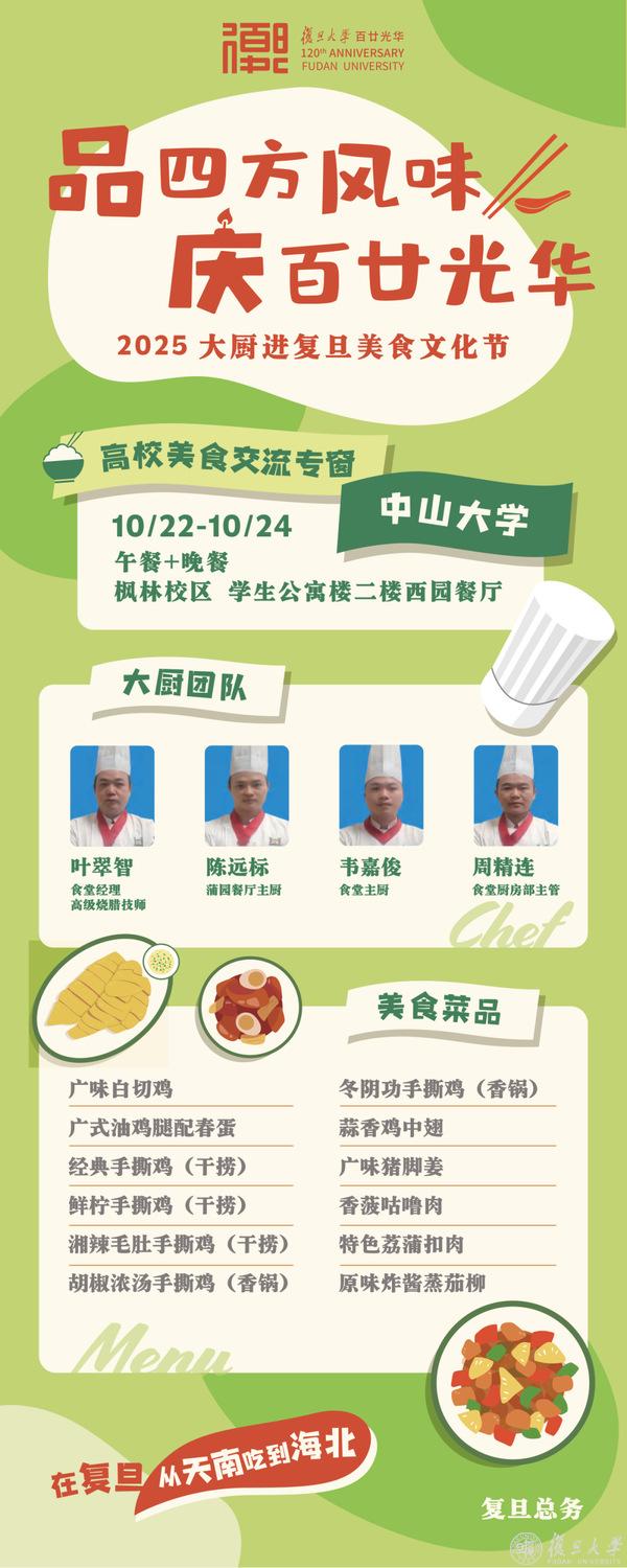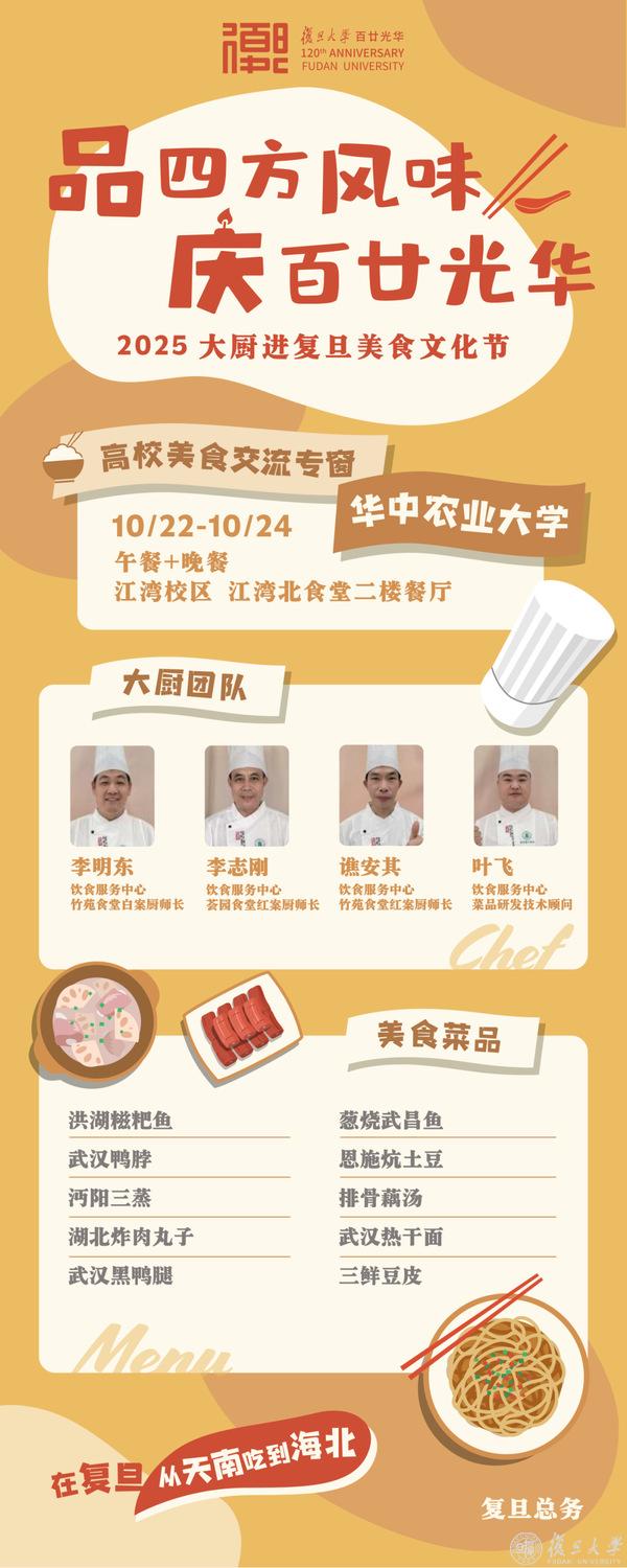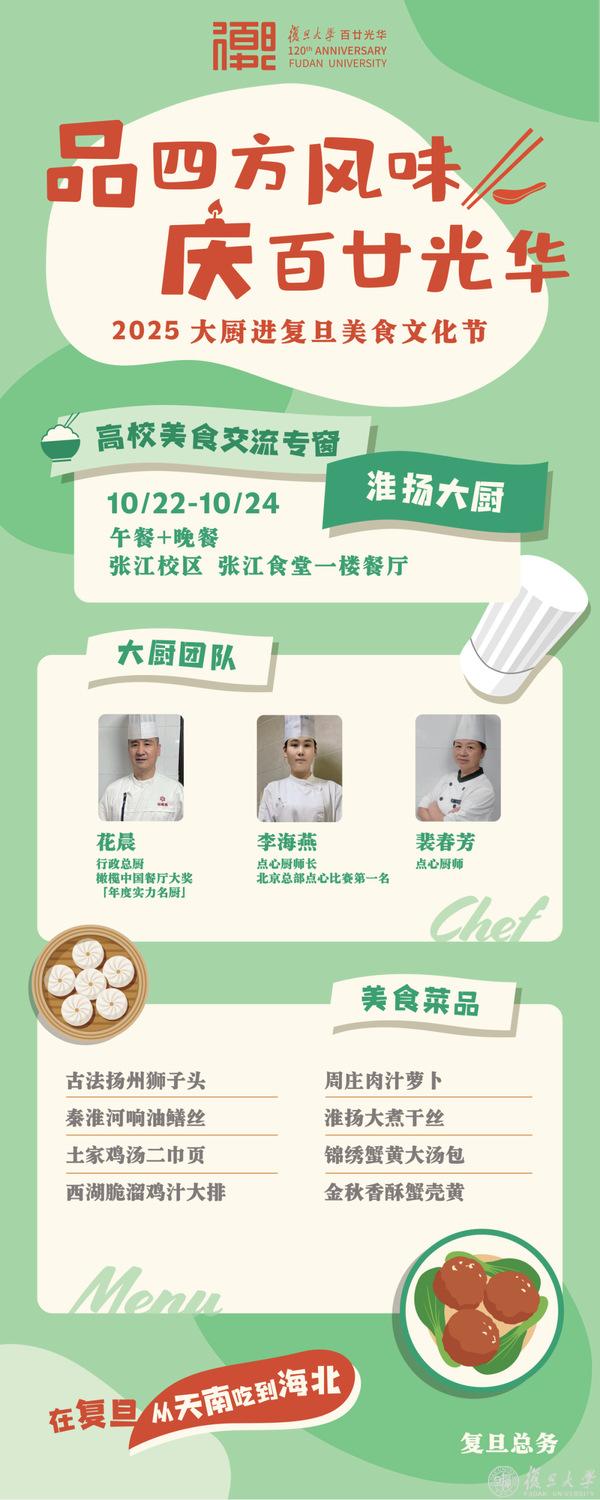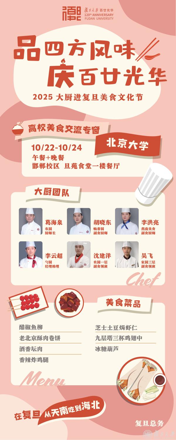 10月21日下午2:00相约北食,品四方风味,庆百廿光华——2025大厨进复旦美食文化节正式开幕。