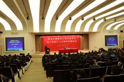 培训会上,上海市委党校袁秉达教授作党的十八大精神辅导报告。他阐述了十八大召开的背景和大会的主题,梳理了十八大报告的主线和主旨,鲜明地点出了报告的新意与亮点,并谈了对新一届中央政治局常委履新以来出现新气象的感受。报告条理清晰、深入浅出、内容生动翔实,对于我校教职工党支部书记准确把握十八大报告的精神实质和思想内涵,起到了重要的帮助作用。