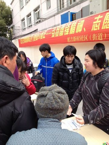 2013年3月2日下午,复旦大学生命科学学院青志队在延吉新村街道开展学雷锋便民活动。通过形式多样的现场服务,向当地居民普及应对空气污染和文明用餐的有关知识,以身体力行的方式传承雷锋精神。下午3点许,活动圆满结束。