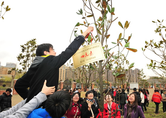 2013年3月11日下午植树节前夕,来自25个院系的本专科毕业生代表齐聚江湾校区,共同参与“感念复旦情,扬帆中国梦”2013届毕业生植树纪念活动。校党委副书记陈立民,相关部处负责老师、毕业班辅导员和同学们一同种下寓意感恩和梦想的树苗。