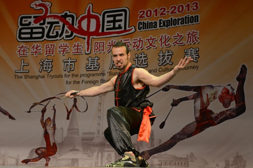 民族传统体育展示中复旦大学意大利留学生杰古表演武术