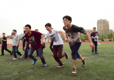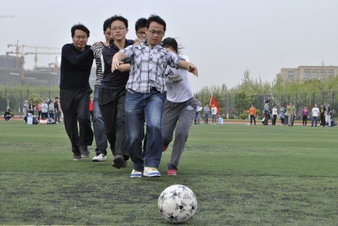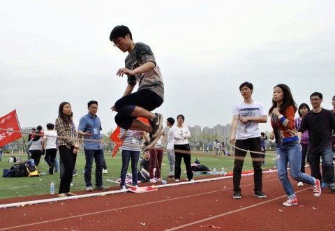 开幕式之后进行的是本次研究生体育节的第一项赛事----趣味运动会。全校性的研究生趣味运动会至今已举办六届,本次趣味运动会承继以往的赛制传统,分为单人项目和集体项目,其中单人项目主要包括踢毽子、花样跳绳、蒙眼敲大锣和定点投篮,集体项目除了往年广受好评的长绳、滚雪球、袋鼠跳、三人四足外,还增加了众星捧月和动力火车两个新项目。运动项目丰富多彩、妙趣横生,同学们全身心投入到比赛之中,个人顽强拼搏的品质和团队齐心协力的精神在赛场上展现得淋漓尽致。最终,化学系代表队获得了本次运动会的团体冠军,经济学院和环境系代表队获得亚军,季军则分属外文学院、物理学系、信息学院、社政学院和先进材料实验室教工队;另有37位同学获得了个人奖项;材料科学系和分析测试中心获得幸运大奖。