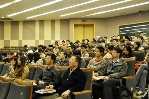 4月18日周四晚6:30,中国银联系列讲座第五讲在复旦大学经济学院大金报告厅准时开始。本次讲座的题目是“慧眼看中国:社会管理的本土品性与多元创新”。中国银联为了拓展复旦大学学生的知识,专门拨款资助这些讲座。