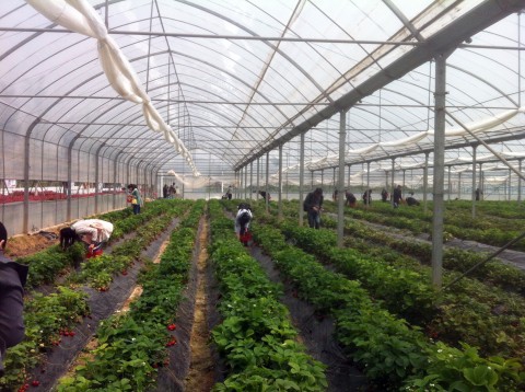 第一站是瑞华果园,首先映入眼帘的是大片大片的暖棚。眼下正是草莓成熟的季节,当看到草莓标识时,大家迫不及待地冲了进去,亲自体验了一把采摘的乐趣,不一会每个人就采了满满一筐。果园坐拥1500亩地,绿水环绕,青草芬芳,同学们边玩赏,边吃着自带的干粮。果园内还有许多拓展游戏,大家玩得不亦乐乎。