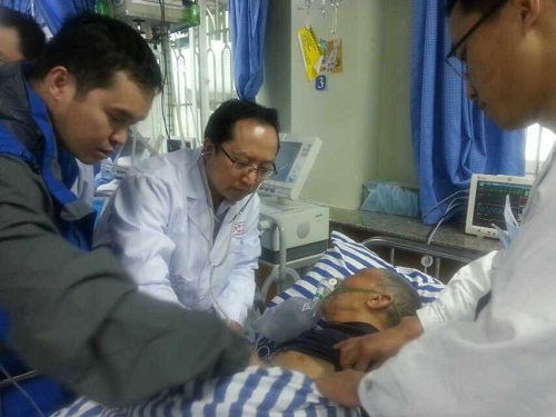 陈澍(左二)正在诊治一名情况危急重伤老人。