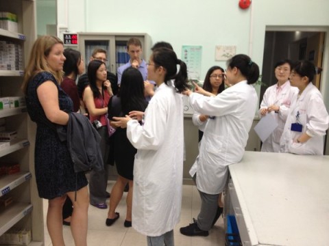 5月10日下午,师生一行又参观了复旦大学枫林校区及复旦大学附属中山医院药剂科。在中山医院,临床药师们带其参观了心内科病房,演示了日常工作流程;参观了住院药房及门诊药房,展示了中山医院调配药品的主要工作情况。师生们对中山医院药师们的工作非常敬佩,同时也向药师们询问了许多关于中药、患者个体化用药等方面的问题。