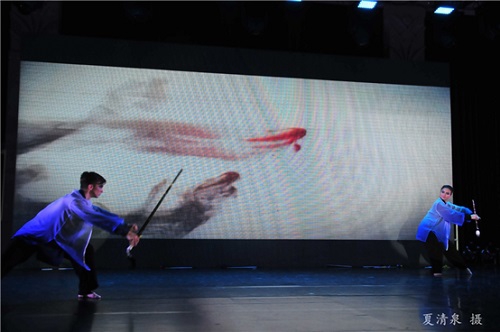 副校长陆昉,市教委和我校艺教中心有关负责同志,各机关、院系部分老师代表,本校及兄弟院校师生齐聚一堂,观看表演,并在演出结束后上台与演员亲切留影。