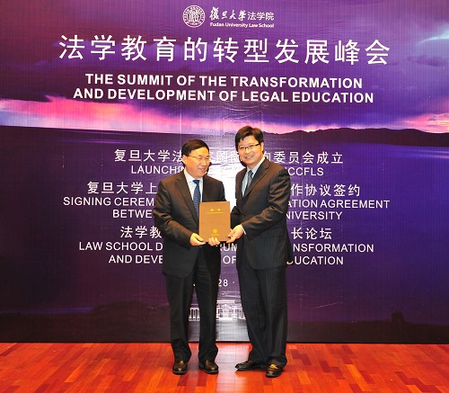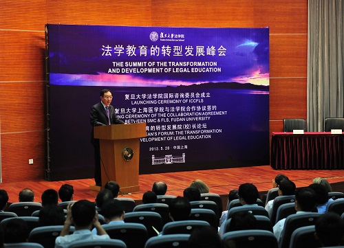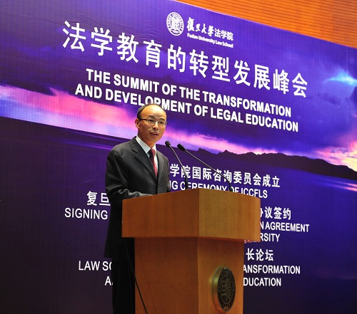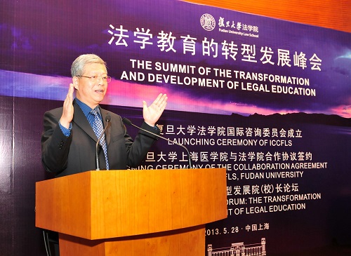 新闻中心讯 5月28日上午,“法学教育转型发展峰会”在复旦大学江湾校区隆重开幕。此次峰会由复旦大学法学院主办,斯坦福大学、康奈尔大学、慕尼黑大学、清华大学、中国人民大学、浙江大学、南京大学、西南政法大学、上海交通大学、山东大学、台湾大学、台湾政治大学等来自世界各地多所一流大学的20余位法学院校的校长、院长出席峰会并就中外法学教育的转型与创新开展了深入研讨。全国人大常委会法律委员会、商务部法条司、香港律政司、中国法学教育研究会等机构的相关负责人和代表也出席了此次峰会,并介绍了司法和法律工作一线的实践情况与人才需求。
