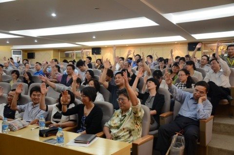 2013年5月27日下午四点,在复旦枫林校区东一号楼二楼报告厅,召开基础医学院全体教工党员大会,选举学院出席中共复旦大学第十四次代表大会的代表。