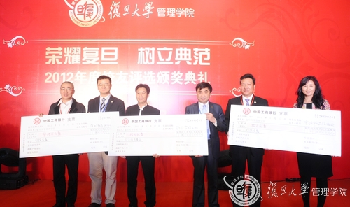 五洲四海,各地学子觞酬共聚,今夜我们同是管院校友!星光璀璨,各界精英济济一堂,今夜我们共同见证管院盛典!5月17日晚,”荣耀复旦,树立典范”我院2012年度校友评选颁奖典礼隆重举行。十余位“年度校友”候选人、学院领导、老师,以及两百多位来自各行各业的校友齐聚一堂,共同见证了这一年度盛会。校友中心黄智颖主任主持了典礼。