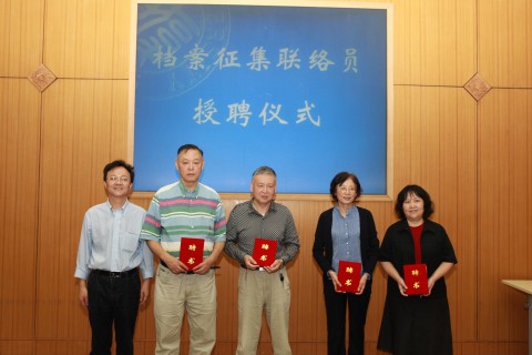 档案征集工作离不开校友们和社会各界人士的热心支持和帮助,仪式上,周桂发还向为复旦档案征集工作出贡献的热心人士代表颁发了“复旦大学档案征集联络员证书”。他们是上海医学院程刚老师、经济学院王志红老师,知名收藏家郑家庆先生、马开桂女士的代表卢永亮先生(著名物理学家卢鹤绂先生之子)。