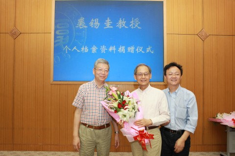 9时整,复旦大学档案捐赠仪式隆重举行。仪式由校档案馆张劲副馆长主持。周桂发馆长首先以生动的语言、详实的事例,向出席仪式的来宾介绍了近年来档案馆进行了“校史资料、人物档案、大学记忆”三个系列档案的征集概况。他说:“通过这些复旦老教授、学术大家留存的证书、手稿、照片等档案资料,让人们了解他们做学问中的点滴甘苦,同时对后辈可以产生教育意义,鞭策当今学子奋发学业”。