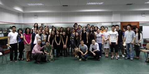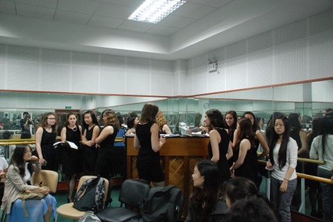 6月5日,复旦大学学生合唱团又迎来了哈佛最早的女子无伴奏合唱乐团Radcliffe Pitches,进行一个轻松的音乐交流会。作为面向全校合唱爱好者的音乐交流会上,热情、自由、随性的音乐,仿佛将每个参与者连为一体,激情的互动引起和谐的共鸣,艺术教育馆排练厅俨然成为艺术的殿堂。
