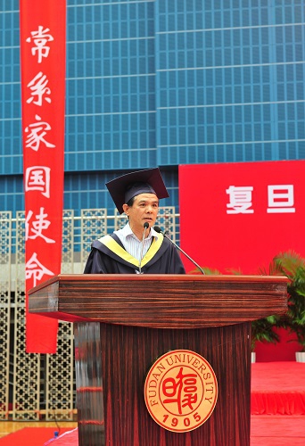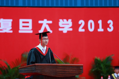上海医学院博士朱文卿代表全体毕业生发言。他说:“没有梦想就没有奋斗的方向,没有梦想就没有前进的动力。我的梦想是解决临床需求,推动医学事业的发展。复旦的熏陶,使我们志存高远、脚踏实地;复旦的培养,使我们的梦想不断超越,不再遥远。感谢尊敬的老师,感谢亲爱的父母、家人,感谢复旦!”