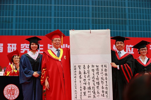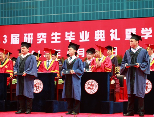 让学子们倍感神圣的一刻,是校领导及导师代表为毕业研究生授予学位。学位帽上的流苏被从右到左轻轻地拨过,握手,微笑,合影,莘莘学子难忘的求学历程划上了圆满的句点。