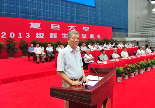复旦欢迎你们来到这里!每年欢迎新同学的开学典礼,我感到对复旦总是具有非常特殊的意义,因为复旦这两个字的本来意思就是太阳再一次升起,而你们各位就是复旦校园里初升的太阳,是你们让复旦永远保持着朝气蓬勃。复旦非常庆幸拥有了你们。