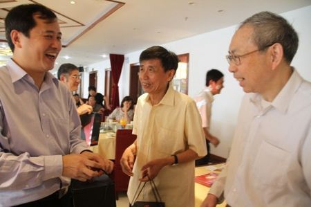 学院领导和与会人员为“逢五、逢十”的43位寿星祝寿,80岁的寿星徐学基、70岁的寿星应萱同讲话,他们回顾了自己在复旦工作和生活的情景,表达自己对复旦难以割舍的情怀。应老师最后一句:“复旦爱我,我也爱复旦!”引起大家的共鸣,大家情不自禁鼓掌表示赞同。