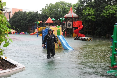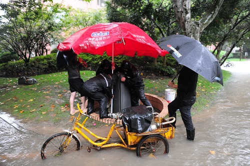在抗台的三天两夜中,总务后勤部门的员工表现出超强的责任心和吃苦耐劳的感人品质。大家齐心协力,排水抢险。10月8日中午时分,校园内所有积水就已全部消退,在校师生工作、生活正常,未发生重大财产损失。
