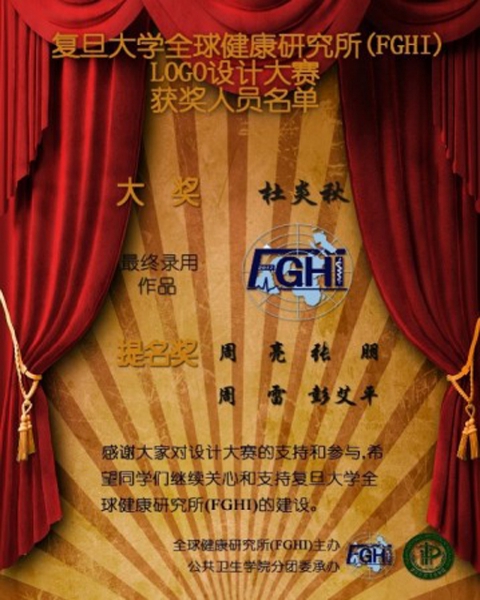 自2013年5月开始,复旦大学全球健康研究所面向枫林校区所有学生,开展LOGO设计大赛,吸引了许多对全球健康有兴趣的同学参与。本次设计赛共收到24份作品,经全球健康研究所有关专家和公共卫生学院团学联的评选,在首轮入围的的5份作品中,预防医学11级本科生杜炎秋同学所设计的LOGO,得到一致好评,夺得本次设计赛的大奖。