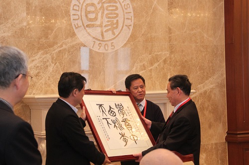 复旦大学副校长林尚立代表学校向刘放桐教授赠送了礼品。
