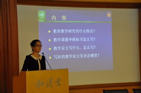 随后,汪青老师做了题为“教学课题申报与教学论文撰写”的培训讲座,分别以“教育教学研究有什么特点”、“教学课题申报标书怎么写”、“教学论文写什么、怎么写”及“写好的教学论文发表在哪里”等问题为切入点,采用理论和实例相结合的教学方式,为与会人员系统地讲述了教育课题申报和教学论文撰写的重点,其中还特别针对毕业后医学教育阶段的选题和论文方向给出了建议。讲座之后,汪青老师还就大家普遍关心的“各级各类课题的申报渠道和时间”等问题做了回答。