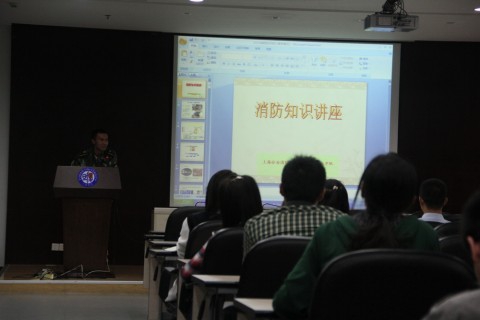紧接着,第二环节“消防知识讲座”于张江校区行政楼报告厅举行。消防官兵给药学院师生做了一个小时的详细讲解。从火灾发生的主要原因,到如何消除寝室安全隐患,如何正确报警,如何火场逃生等,讲座着重介绍了火灾中人的常见反应、心理变化,火灾中的各种自救方法,逃生过程如何避免危害等火灾发生时的注意事项。听过讲座的师生学会了在火灾发生的紧急时刻如何正确逃生。