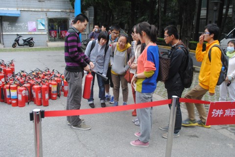 10月29日下午,随着2013级社会科学试验2班最后6名同学提着灭火器冲向火桶完成灭火的实际演练,2013级本科生总计3300余人的灭火器演练全部完成,高职新生的演练也将于11月12日在枫林校区举行。自2013年初以来,学工部和保卫处联合开展“我是灭火器”消防安全教育活动,尝试对 2012、2013级所有学生开展灭火器知识培训和现场操作活动,所有新生入学后都学习灭火器的使用方法并亲身演练。