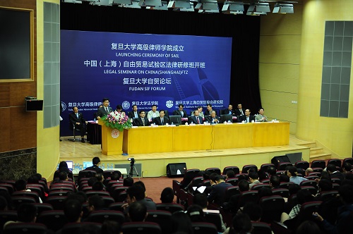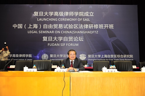 新闻中心讯 11月9日上午,复旦大学高级律师学院成立仪式、高级律师学院中国(上海)自由贸易试验区法律研修班(第一期)开班仪式暨复旦大学自贸论坛(第三期)在复旦大学江湾校区廖凯原法学楼举行。国务院法制办公室副主任甘藏春作为论坛嘉宾应邀出席并就中国(上海)自由贸易试验区的法制问题作主题演讲。
