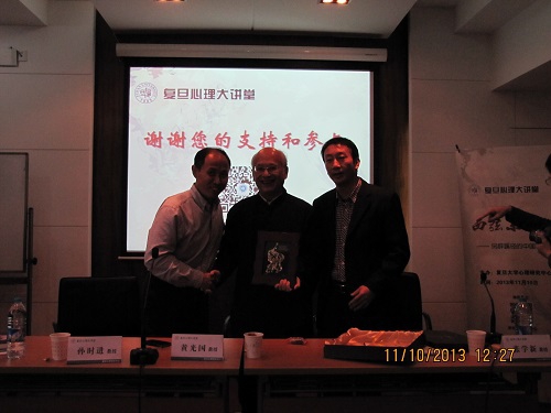 2013年11月10日星期日上午9:00, 由复旦心理研究中心主办的第五期复旦心理大讲堂在复旦大学文科楼顺利举行。 本次心理大讲堂邀请复旦大学心理学系孙时进教授、台湾大学心理学系黄光国教授, 复旦大学心理学系张学新教授作为演讲嘉宾,共同梳理心理学在台湾的发展历程,回顾台湾在心理学本土化过程中的经验、教训和体会;在此基础上探讨该过程对大陆心理学本土化发展中的借鉴意义,以及心理学将如何服务于中国的发展。 来自心理学界的80余位专家学者出席了本次研讨会。