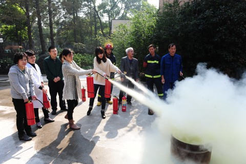 消防演习结束后,杨浦区国定消防中队同志还为我馆工作人员进行了消防器材使用培训。