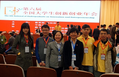 11月16、17日,由教育部、科技部联合主办的“第六届全国大学生创新创业年会”在中南大学举办,该年会是集中展示全国大学生创新创业训练计划成绩的一个窗口。来自全国各地160余所高校的500多位师生参加了此次年会,一起交流创新创业经验,展示创新创业成果。本次年会从全国160余所高校遴选出90篇学术论文,150项展示项目进行现场报告和展示交流。我校材料科学系张安琪和上海医学院周峰两位同学的论文,力学系张立东和公共卫生学院刘嘉运两位同学的展板最终入选,教务处副处长应质峰和上海医学院医学教育管理办公室副主任赖雁妮带领上述四位同学参会。