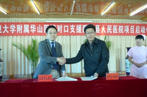 随后,丁院长和王院长分别代表华山医院和腾冲县人民医院,签订了《沪滇医院对口支援协议书》。马昕副院长、耿道颖副书记和团委沈芳芳副书记分别代表我院,向人民医院捐赠医学书籍,并向腾越二完小“爱心书屋”授牌和捐赠书籍和学习用品。