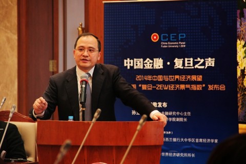 12月4日下午,由复旦大学金融研究中心、复旦大学中国金融家俱乐部、德国欧洲经济研究中心主办的2014年中国与世界经济展望暨第四期“复旦-ZEW经济景气指数”发布会在光华楼思源报告厅顺利召开。复旦大学金融研究中心主任、复旦大学经济学院副院长孙立坚教授主持本次会议并进行了指数发布,复旦大学经济学院世界经济研究所所长华民教授,澳新银行大中华区首席经济学家刘利刚博士发表主旨演讲。