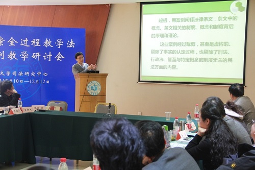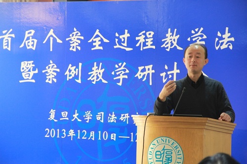 2013年12月10日至12日,复旦大学司法研究中心主办的“首届个案全过程教学法暨案例教学研讨会”在复旦大学卿云宾馆多功能厅隆重举行。来自北京大学、清华大学、中国人民大学、北京师范大学、中国政法大学、上海交通大学、南京大学、浙江大学、中山大学、吉林大学、厦门大学、西南政法大学、华东政法大学、西北政法大学等全国33所高等院校,以及最高人民法院、河南省高级人民法院、浙江省高级人民法院、上海市一中院等6家实务机关的48名代表出席了会议。参会人员中,仅国家级的研究会会长、副会长,法学院主管教学的院长、副院长,以及省高院的相关领导就有近20位。如此高规格的国内案例研讨会,在我国法学界尚属首次。