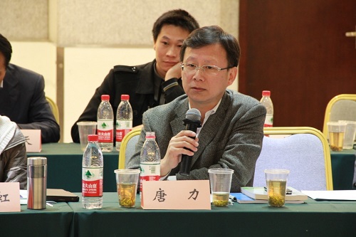 西南政法大学法学院院长唐力教授向与会代表介绍西南政法大学双师同堂案例教学的特色,以及学校为促进实践性教学与重庆市高级人民法院、律师事务所等单位开展的合作教学。