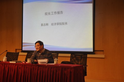随后学院工会主席严法善老师作了学院工会2013年工作报告,经济学院院长袁志刚老师,副院长尹翔硕老师、杨长江老师、刘军梅老师,副书记尹晨老师、蔡晓月老师依次作了2013年度工作述职报告。学院党政领导班子成员总结和回顾了一年分管工作的情况,并提出了2014年工作的思路。石磊书记对2013年学院工作进行了总结。