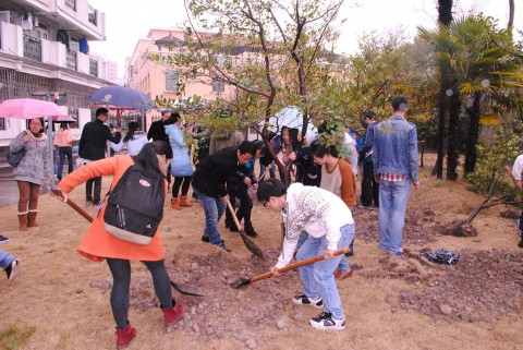 3月12日植树节当天中午, 由复旦大学北苑管委会主办、2013级生科和环科研究生团学联协办北苑第四届植树节活动的顺利举行。虽然活动当天细雨迷蒙,但丝毫不减弱同学们的热情,同学们的热情为北苑平添一抹温馨。