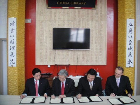 4月1日上午,在被联合国教科文组织评为“人类文化遗产”的布鲁日市,我校、人大和川大,又与被誉为“欧洲政治家摇篮”的欧洲学院(College of Europe)签署了战略合作协议。有意义的是,签字地点是在刚刚落成的、由我国新闻出版署资助的“中国馆”内,这个中国馆,实际是欧洲学院开展中国研究、中欧关系研究的一个书籍、信息、人员交流的基地。欧洲学院的Jorg Monar校长非常兴奋,认为这个协议的签署,无疑将极大地提升欧洲学院的面向中国的研究和培养进程,为中欧关系的长期稳定积极发展发挥巨大的作用。
