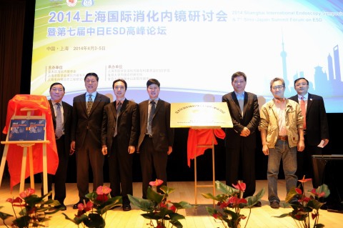 上海医学院副院长夏景林代表世界消化病学会主席曹世植宣读在复旦大学附属中山医院成立亚太地区消化内镜ESD专业委员会的讲话稿;普外科专家、复旦大学附属中山医院党委书记秦新裕,夏景林,中华消化内镜学会主委李兆申,日本东京大学消化内镜部主任小野教授等出席开幕式,并为亚太地区消化内镜ESD专业委员会成立和英文版《内镜治疗新进展》一书出版揭幕。