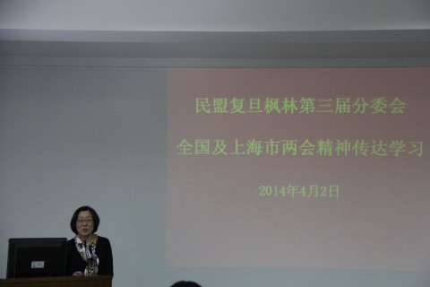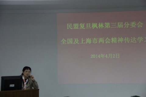 4月2日,民盟复旦枫林第三届分委会在枫林校区图书馆二楼演讲厅举行全国及上海市两会精神传达学习会。民盟复旦枫林校区主委叶德泳教授主持会议。参加全国及上海市两会的郑珊、朱同玉、周蓓华先后传达了会议精神。复旦大学统战部副部长包一敏参加了会议。