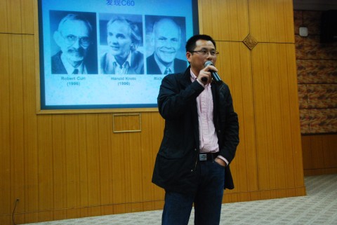 随后,开幕式特邀第六届“研究生心目中的好导师”高分子系候选人彭慧胜教授做精彩报告。彭老师以“新型纤维状能源器件:未来衣服能发电”为题,深入浅出地为在场师生介绍了新型能源器件的起源与未来,很多在场同学都被“能发电的衣服”所深深的吸引,更感叹彭老师课题组科研的前沿与思路的开拓。同时,彭老师还提到科学与美的理念,引导同学们多看经典科学书籍,激励同学们在自己的科研工作中发现美,完善美,让自己的科研成果为全世界学术之花的绽放做出贡献。在互动环节提问的同学还获得了彭老师的签名荐书。