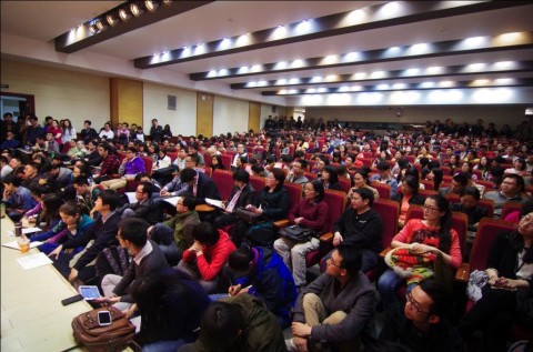4月9日晚,由复旦大学党委研究生部工作部主办,哲学学院研究生团学联协办的“当代中国的精神重建”报告会在光华楼东辅楼102报告厅举行。哲学学院吴晓明教授、王德峰教授应邀出席,以学者对话的形式展开探讨。报告会吸引了众多师生聆听,讲台前和室内空地也席地坐满了人。