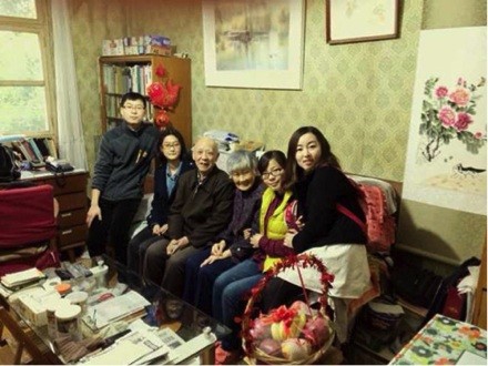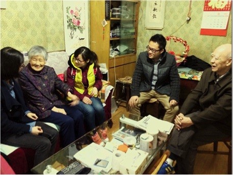 接下来,同学们又去看望了程极济、杨庆云两位老人,两位老人都是生理和生物物理系的退休老师,为学校生物物理学科的建设做出过巨大贡献。刚到两位老人的家,杨老师就热情地招呼同学们坐下,给每个人发巧克力吃,同大家热烈地交流谈心。杨老师还给大家播放了一段视频,视频里是两位老人自上世纪40年代起一起牵手走过的半个多世纪的照片合集,他们一起走过了“银婚”,走过了“金婚”,现在又走到了“钻石婚”。同学们看完都非常感动,一方面是被两人坚定的爱情所打动,另一方面是被两人为了自己的理想和事业终其一生拼搏奋斗的精神所打动。直到现在,两位老人还坚持每天看书的习惯。杨老师说:“耳朵听不清不要紧,只要眼睛还看的到,我们都还是会看书的,不然就要脱离这个世界咯。”这番话给了同学们很大的鼓舞,从二老的身上,同学们看到了他们这一代人的理想与奋斗,信仰与坚持,爱情与生活。同学们真心祝愿两位老人,健康长寿,永远幸福!