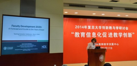 在上午大会中,美国马塞诸塞大学阿姆斯特分校副教务长、教育学院教授、教学与教师发展中心主任Mary Deane Sorcinelli、英国格林威治大学教育发展部主任Simon Walker和复旦大学微电子学院教授、教师教学发展中心副主任蒋玉龙分别作了题为“2020年教师发展展望——未来的预测与标向(Faculty Development 2020: A Forecast and Guide to the Years Ahead)”、“开放互联世界中的教与学(Learning and Teaching in an Open and Connected World)”和“技术创造自由、自主、自知的学习”三个报告。