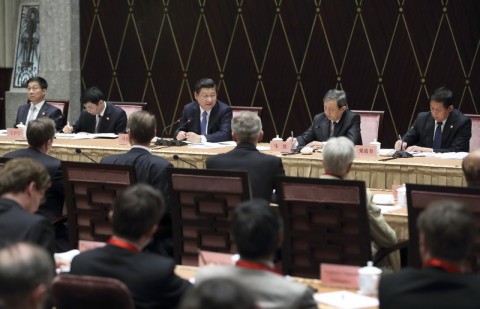 座谈会结束时,习近平同外国专家一一握手,送他们离开会场。