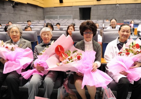 演讲朗诵会结束后,宣讲员特意向来到现场的郭怡清教授、马伴吟教授、王岱明教授以及朱启镕教授献上鲜花,感谢他们为儿童健康事业的作出的杰出贡献。